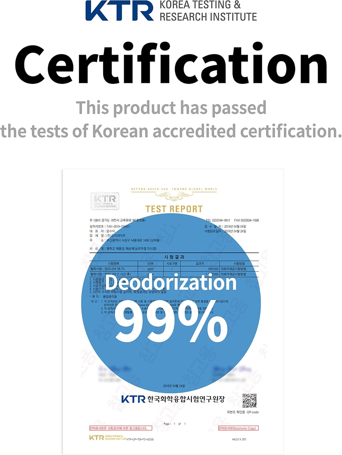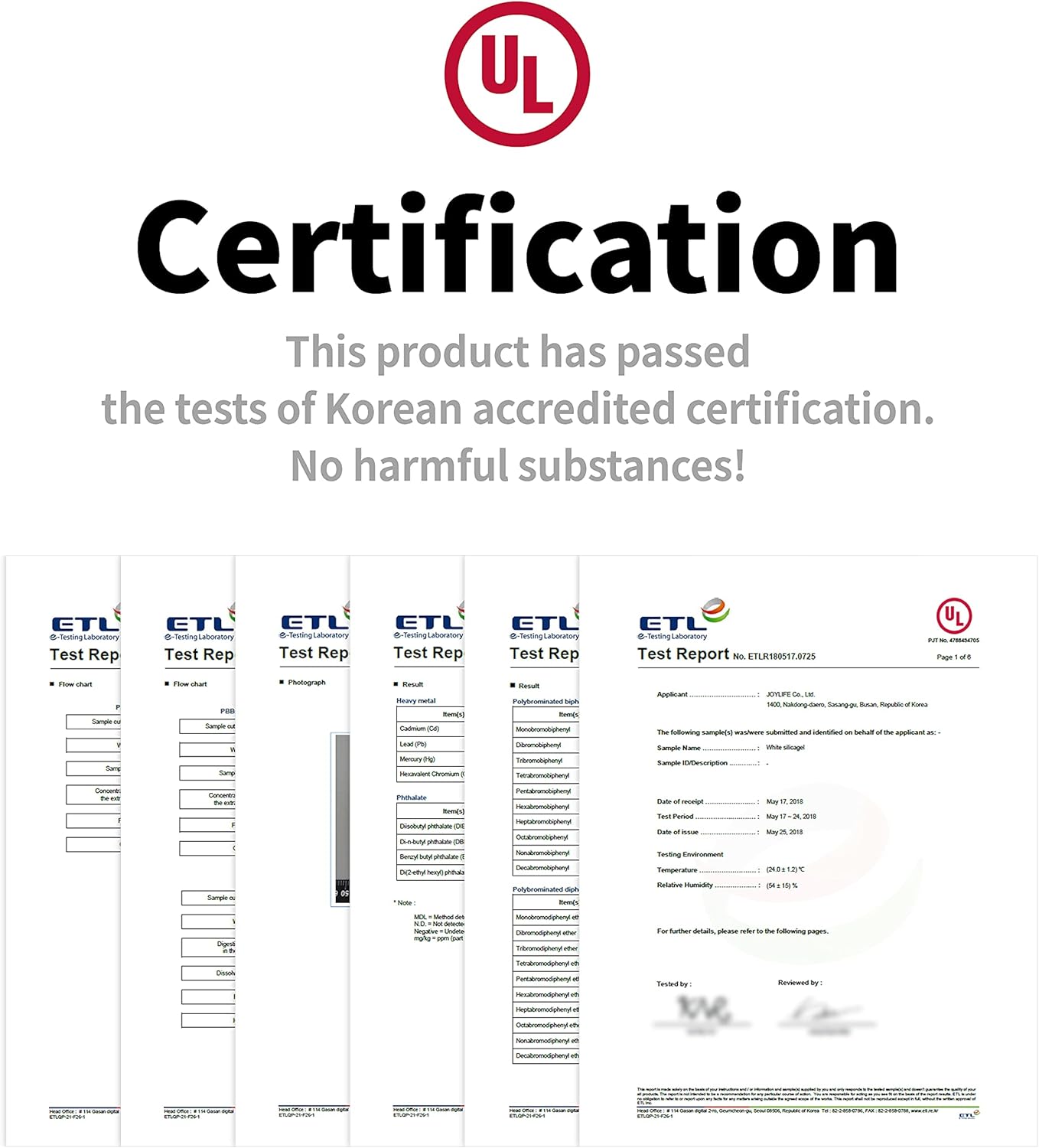 As a result of testing, no hazardous substances were found. Use it with confidence! This product has passed the tests of Korean accredited certification. Food&Pharmaceutical Grade Excellent Permeability.